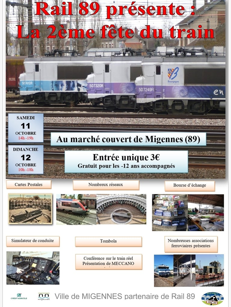 Nous ne remercierons jamais assez l'appui de nos partenaires tel que l'Office du Tourisme du Migennois, la commune de Migennes, le Club de Modélisme Rail-89, l'UNECTO, le soutien de SNCF Patrimoine et du dépôt de Laroche-Migennes, qui ont rendu cette édition possible.
